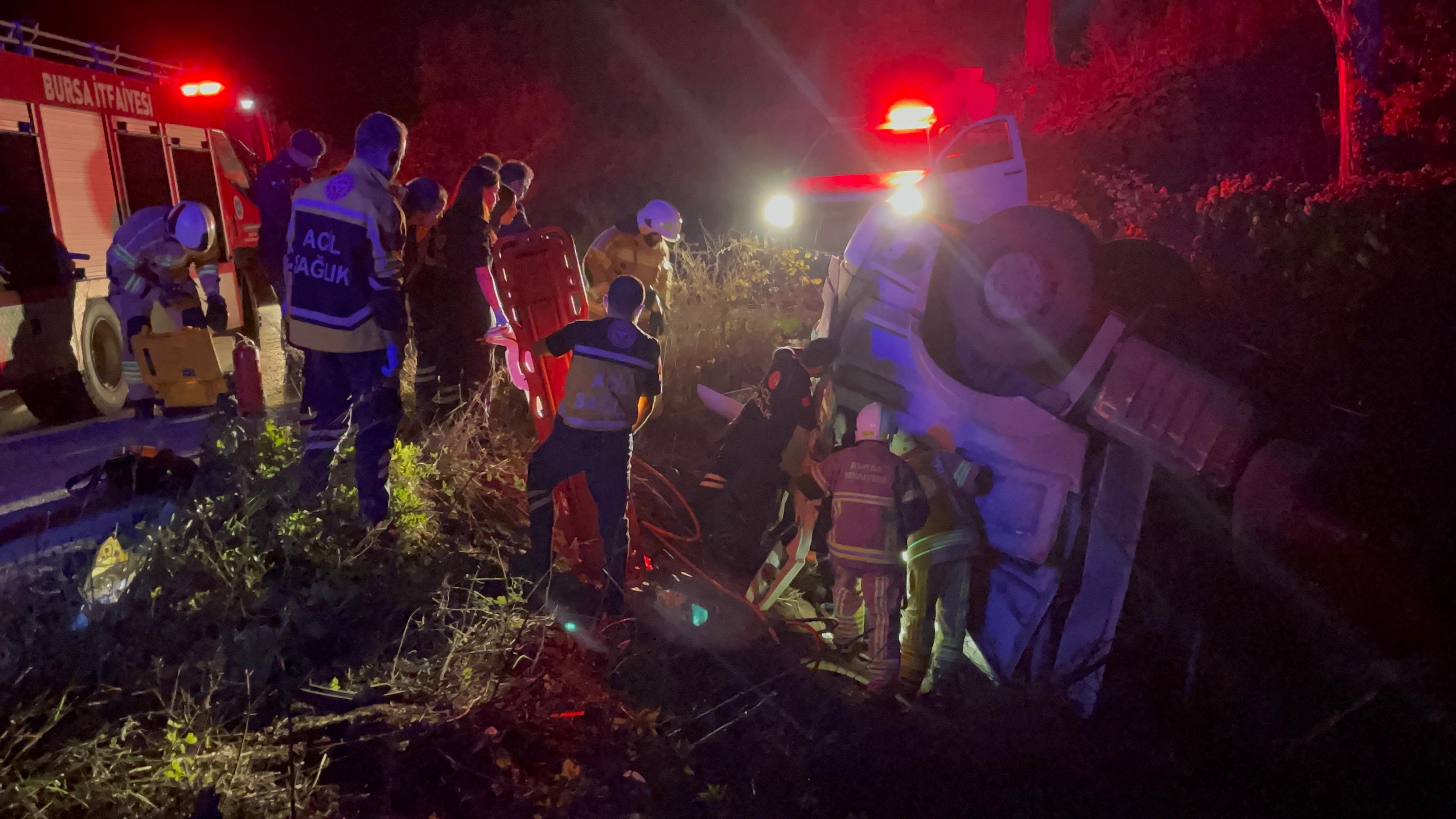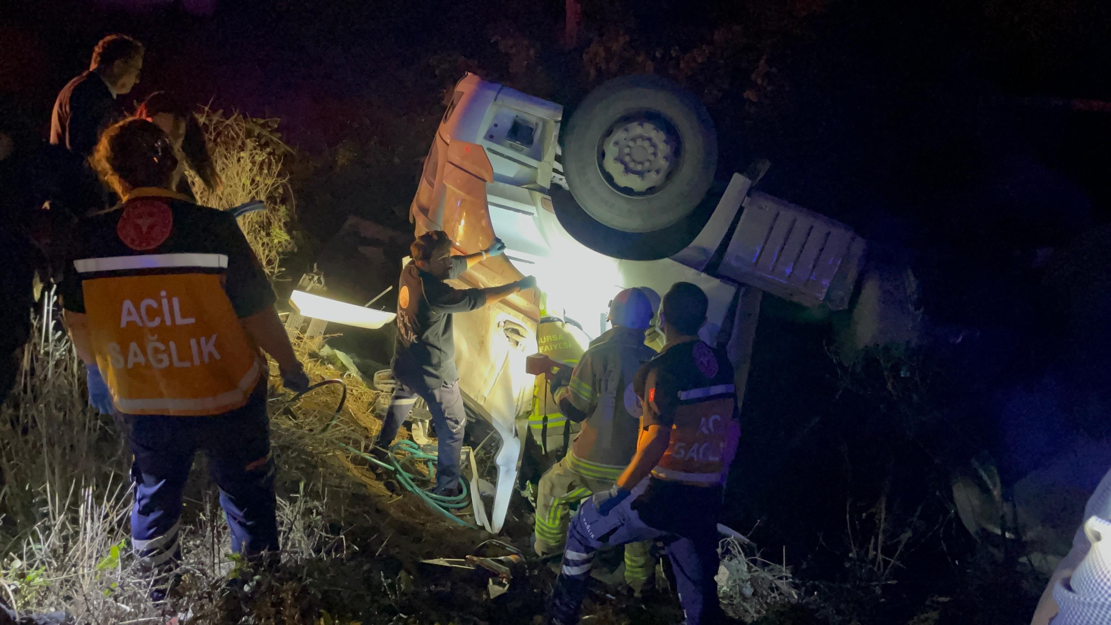 İznik istikametine seyir halinde olan Kadir Menteş yönetimindeki çimento yüklü tır, sürücüsünün direksiyon hakimiyetini kaybetmesi sonucu bariyerleri aşarak şarampole devrildi.