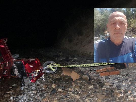 İzmir'in Foça ilçesinde yoldan çıkarak yaklaşık 30 metre yükseklikten şarampole devrilen elektrikli motosikletin sürücüsü Mustafa Topal (60), hayatını kaybetti.