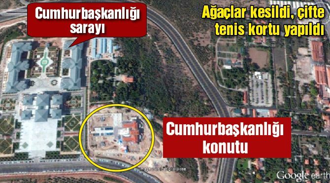 GÖRÜNTÜ TARİHİ: 8 EKİM 2014Google Earth fotoğrafları Cumhurbaşkanlığı Sarayı’nın yanında inşa edilen konutun yapımı sırasında çevrede bulunan ağaç yoğunluğunu gösteriyor. Konutun çevresindeki ağaçlar kesildi.