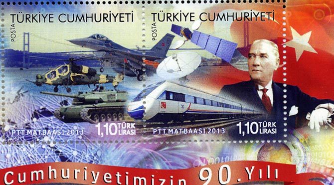 PTT’nin geçen yıl “Cumhuriyetimizin 90. Yılı” başlıklı pulunda, Ulu Önder Atatürk’ün fotoğrafları yer alıyordu. PTT tarafından 29 Ekim 2013’te yapılan açıklamada, “İlk TBMM’nin 29 Ekim 1923’te Devletin yönetim biçimini Cumhuriyet olduğunu ilan etmesi ile milli egemenliğe dayalı Türkiye Cumhuriyeti Devleti’nin kuruluşu gerçekleşmiştir” denilmişti.