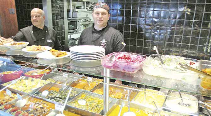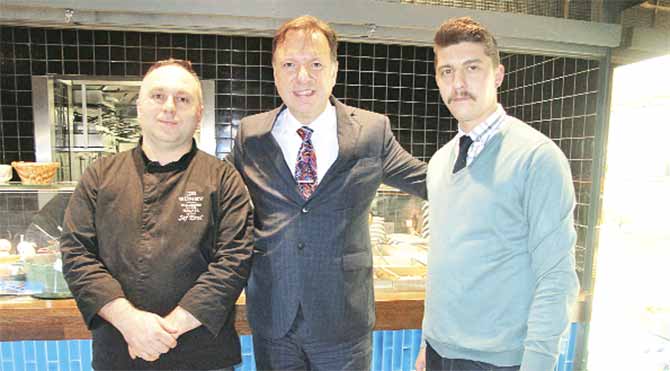 Mutfak şefi İsmail Erol ve servis şefi Güven Ongun ile.