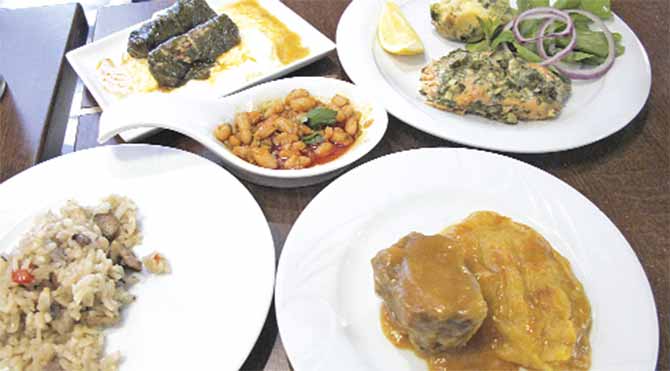 Ben de Güney Restaurant’a giriyorum, bütün yemeklerin dizili olduğu tezgaha yöneliyorum. Kim ne sipariş veriyor dinliyorum. Bakıyorum millet alışmış, yarım porsiyon, çeyrek porsiyon istiyorlar, böylece çok daha fazla çeşit yiyebiliyorlar. Benim gözüm aç, sofrada çok çeşit olması gerek. İçimi ısıtmak için yarım porsiyon borç çorbası istiyorum, oldukça lezzetli. Çorbanın lezzetine güvenerek tadımlık zeytinyağlı yaprak ve biber dolması, köpoğlu ve barbunya pilaki söylüyorum. Şimdi bu satırları yazarken bile ağzım sulanıyor. Hele o dolmalar müthiş, anlaşılan şef dolmada çok usta. Sıcak yemeklere geçince pazı dolmasını da ekliyorum. Yarım porsiyon somon ve mantarlı pilav söylüyorum. Tadımlık fırında et de getiriyorlar. Et biraz sert, geri gönderiyorum. Somon oldukça lezzetli, yanına beşamel soslu brokoli yakışmış.
