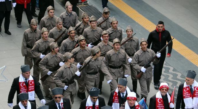 Yaprak KOÇERSAMSUN, (DHA) - SAMSUN`da Sarıkamış Harekatı`nın 101`inci yıl dönümünde 60 bin şehidi anmak için yürüyüş düzenlendi. Yürüyüşte öğrenciler 100 metre uzunluğunda Türk bayrağı taşıdı. Enver Paşa komutasında 1915 yılında düzenlenen Sarıkamış Harekatı sırasında donarak şehit düşen 60 bin Mehmetçik için Samsun`da tören düzenlendi. Merkez İlkadım İlçesi`ndeki Atatürk Anıtı`nda yapılan törene Gençlik Hizmetleri ve Spor İl Müdürü Güven Özyurt, kamu kurum ve kuruluşları müdürleri, gazi, öğrenciler ve çok sayıda kişi katıldı. Atatürk Anıtı`na çelenk sunumu ardından saygı duruşunda bulunulup İstiklal Marşı okundu. Törende konuşma yapan Gençlik Hizmetleri ve Spor İl Müdürü Güven Özyurt, şöyle dedi: `Bizler Samsunlular olarak, Kurtuluş meşalesinin yakıldığı bu şehirden Samsun`dan Sarıkamış şehitlerinin ruhlarını ve ecdadımızın mücadelelerine destek vermek amacıyla toplanmış bulunmaktayız. Bugün bizler ve sizler yarın çocuklarımız ve torunlarımız, inşallah onlarda bizlerin bugün şehitlerimizi yad ettiğimiz gibi dualarla ancak şehit olan ecdadımıza dualarımızı eksik etmemek anlamında bugün bu yürüyüşü gerçekleştiriyoruz.` Konuşma ardından yürüyüş gerçekleştirildi. 100 metre uzunluğundaki Türk Bayrağı taşıyan grup, Lise Caddesi, İstiklal Caddesi ve 19 Mayıs Bulvarı üzerinden Cumhuriyet Meydanı`nda kadar yürüdü. DHA-Genel - Türkiye-Samsun - Yaprak KOÇER 2016-01-03 12:03:47