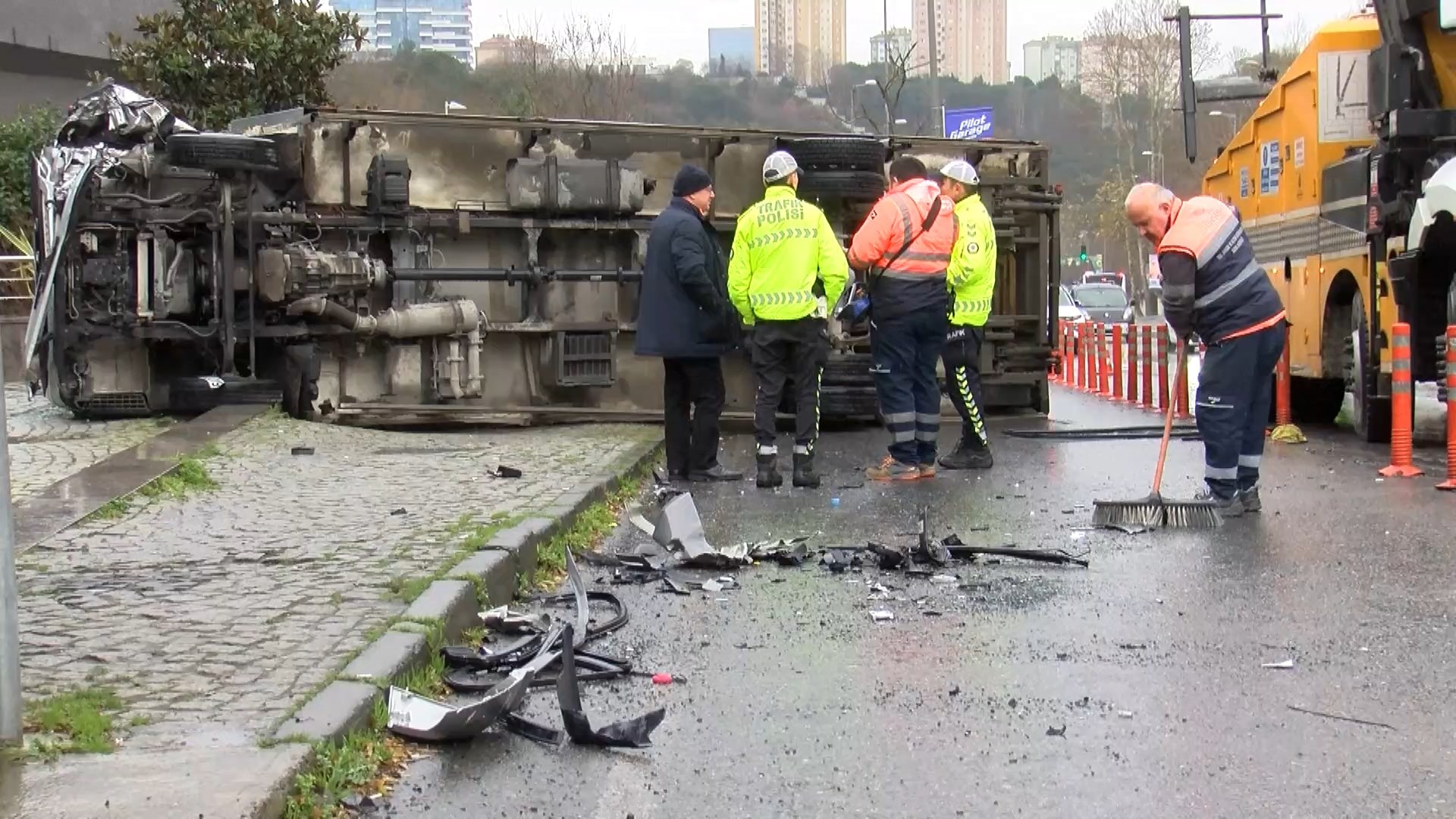 Sarıyer'in Maslak Ayazağa Caddesi'nde, bugün saat 11.00 sıralarında meydana gelen trafik kazasında, aracının direksiyon hakimiyetini kaybeden kamyon şoförü karşı şeride geçerek bir otomobile çarptı. Kamyonun sürücüsü D.G., yokuş aşağı inerken aracının kontrolünü kaybetti. Kontrolden çıkan kamyon, karşı şeritten gelen bir otomobile çarptı ve yan yatarak durdu.