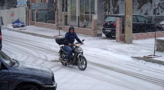 Edirne'nin Keşan İlçesi’nde öğle saatlerinde başlayan kar yağışı etkisini arttırarak sürüyor.