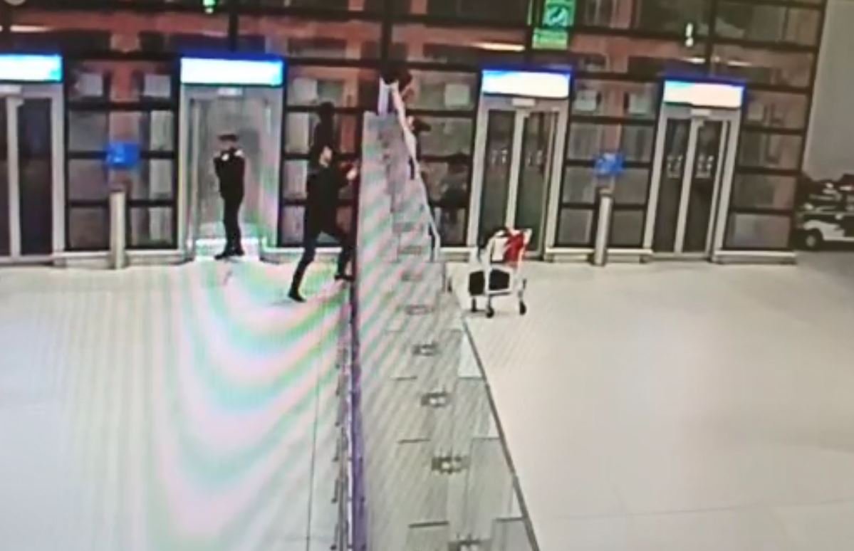 R.A'nın teslim aldığı sırt çantalarını dış hatlar gidiş terminali arındırılmış salon ile iç hatlar gidiş arındırılmış salonu ayıran camlı bölme üzerinden, iç hatlar terminalinde bekleyen Y.A ile E.A'ya verdiği belirlendi. R.A'nın çantaları camlı bölmenin üstünden atmak için yanında getirdiği taburenin üstüne çıktığı anlar kameralara yansıdı.