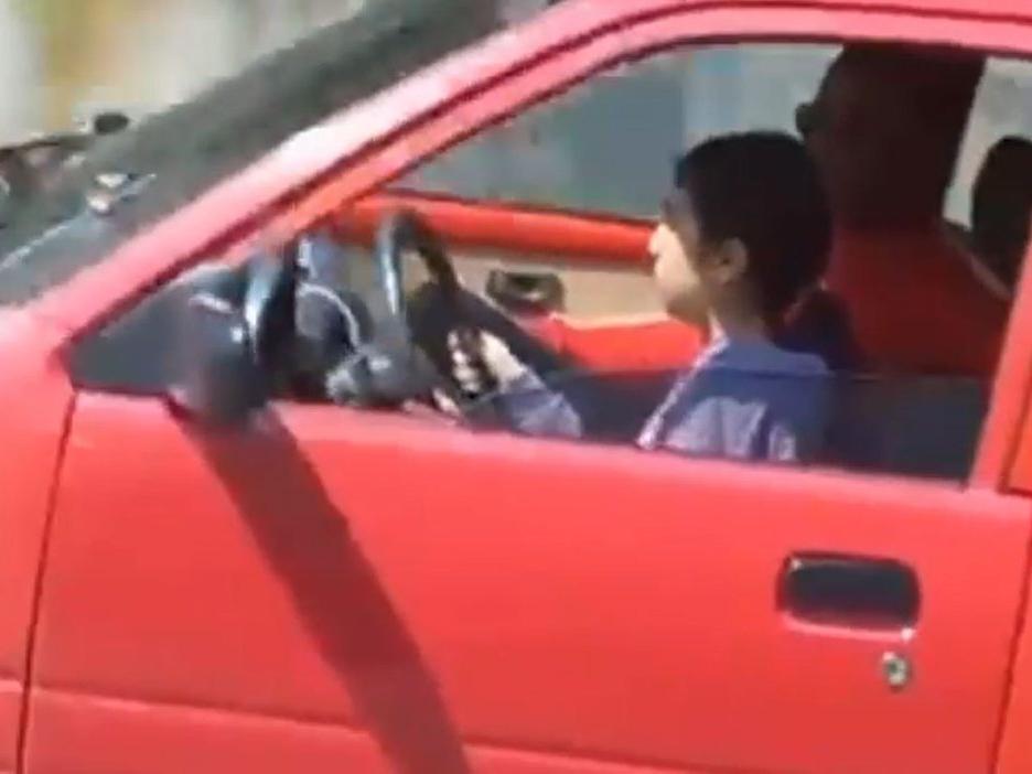 Görüntülerde kız çocuğunun yanında bir yetişkinin de olduğu görülürken, o anları kaydedenler şaşkınlıklarını gizleyemedi. Çocuk sürücünün kullandığı otomobil bir süre sonra gözden kayboldu. (DHA)