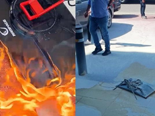 Televizyonu ateşe veren müşteri bu anları da cep telefonuyla kameraya kaydetti ve sosyal medyada paylaştı.