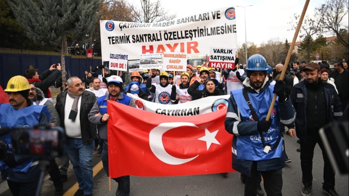 Ankara’daki Çayırhan Termik Santrali ve Maden Ocağı’nın satışına karşı çıkan maden işçilerinin Beypazarı’ndan başlattıkları yürüyüş, dördüncü gününde Hazine ve Maliye Bakanlığı önünde sona erdi. Eylemde konuşan Türkiye Maden İşçileri Sendikası (Maden-İş) Genel Başkanı Nurettin Akçul, termik santraldeki özelleştirme sürecini karşı çıkarak “Sonu nereye varırsa varsın mücadelemizi en üst noktaya taşımakta kararlıyız. Talebimiz belli, tavrımız net: Ya iptal, ya iptal” dedi.