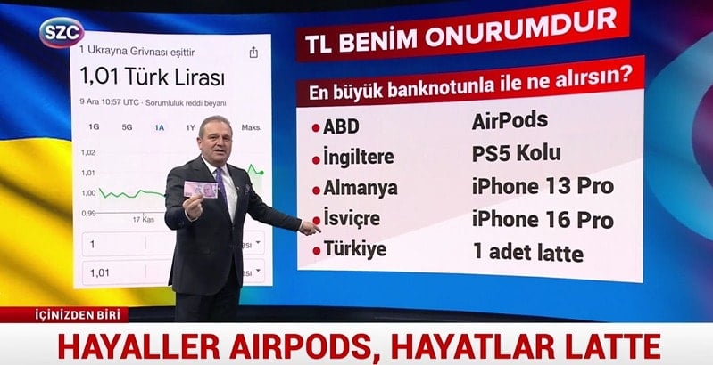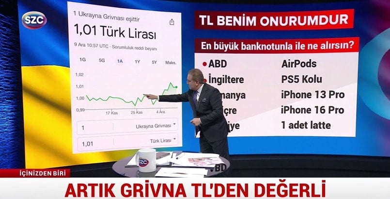"- Şubat 2022'de başladı Ukrayna savaşı. On binler yüz binler hayatını kaybetti. Grivna Ukrayna para birimi. Savaş boyunca TL'den değersizdi. Geldi geldi ve geçti. Bir Grivna artık TL'den daha değerli. Lütfen hayal ediniz. Savaştaki bir ülkenin para birimi bizim TL'mizden daha değerli.