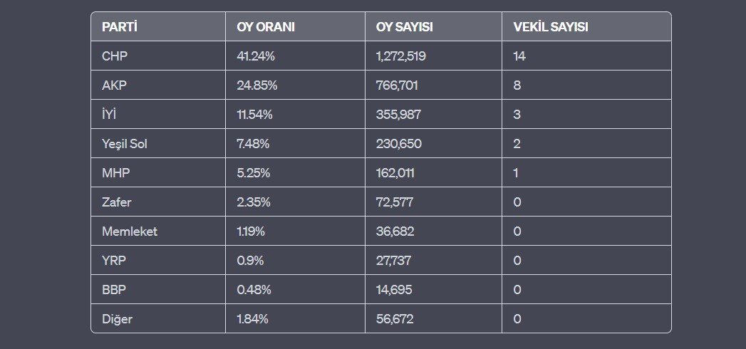 İZMİR MİLLETVEKİLİ SEÇİM SONUÇLARI