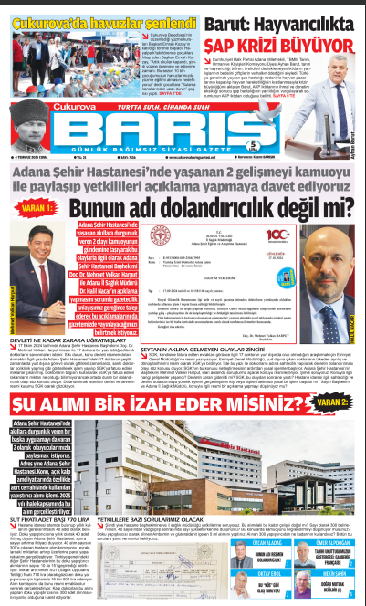 Bugün Adana’da yayınlanan yerel Barış gazetesinde Özcan Aladağ imzalı manşetten verilen bir haber kamuoyuna bomba gibi düştü.