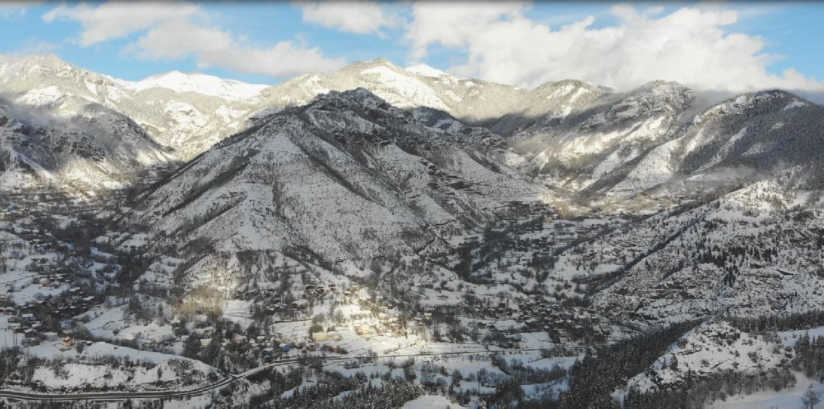 Özellikle yazın ve sonbaharda ilgi odağı olan ilçede, kar yağışıyla güzel görüntüler ortaya çıktı.