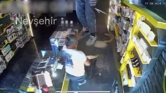 Görevli, iş yeri sahibi İhsan Menevşe'nin yardımıyla indi. Olay, iş yerinin güvenlik kamerasınca kaydedildi.