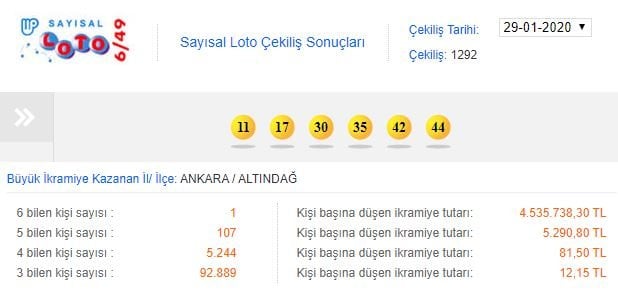 29 OCAK SAYISAL LOTO ÇEKİLİŞ SONUÇLARI