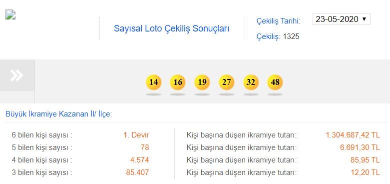SAYISAL LOTO SONUÇLARI 23 MAYIS
