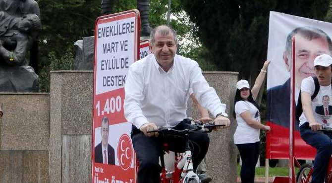 MHP Gaziantep 1'inci sıra milletvekili adayı Ümit Özdağ, 'bisboard' adını verdiği, arkasında partisinin seçim vaatlerinin yazılı olduğu tabelalar olan bisikletlerle anlatıyor.MHP adayı Ümit Özdağ, özel donanımla bisikletlerin arkasına partisinin vaatlerinin yazılı olduğu tabelaların bulunduğu bisikletleri yollara çıkardı. Partili gençlerin kullandığı ve üzerlerinde, MHP'nin seçim vaatlerinin yer aldığı bisikletler kentin sokaklarında dolaşırken, tanıtımını yaptığı ve 'bisboard' adını verdiği bisikletlerden birisini kullanan Ümit Özdağ, kampanya süresince farklılık yaratacaklarını söyledi.