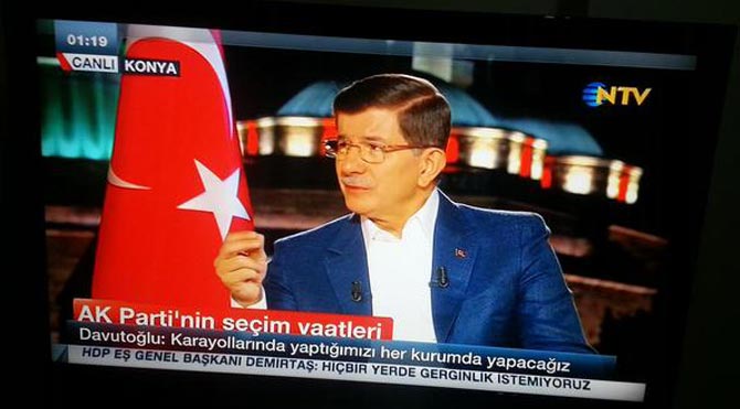 YSK'nın duyurduğu seçim yasakları saat 00.00 itibarıyla başladı. Ama yasağı ilk delen Başbakan ve AKP Genel Başkanı Ahmet Davutoğlu oldu. Davutoğlu gece yarısı NTV canlı yayınına katıldı. Canlı yayında AKP propagandası yaptı.YSK'nın kararında ise yalnızca mitingler için Cumartesi saat 18.00'e kadar izin öngörülmüştü.