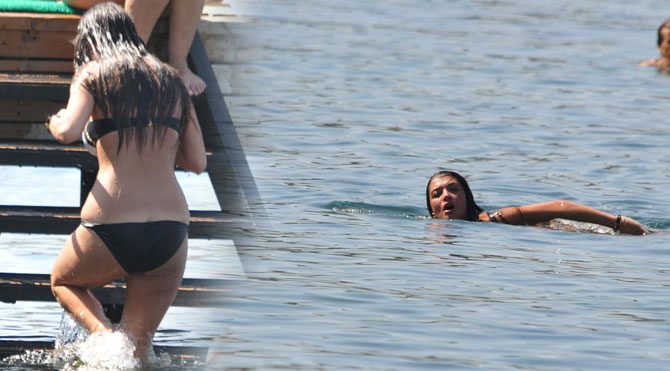 Dizinin ara vermesiyle birlikte sezon yorgunluğunu Bodrum’da atan genç çiftten Aslıhan Güner saatlerce denizde yüzerken eşi Mert Bey’inse genelde gölgede oturması dikkat çekti. Bir ara eşi Aslıhan Hanım’ın yanına gelerek koruyucu krem sürdürdü.