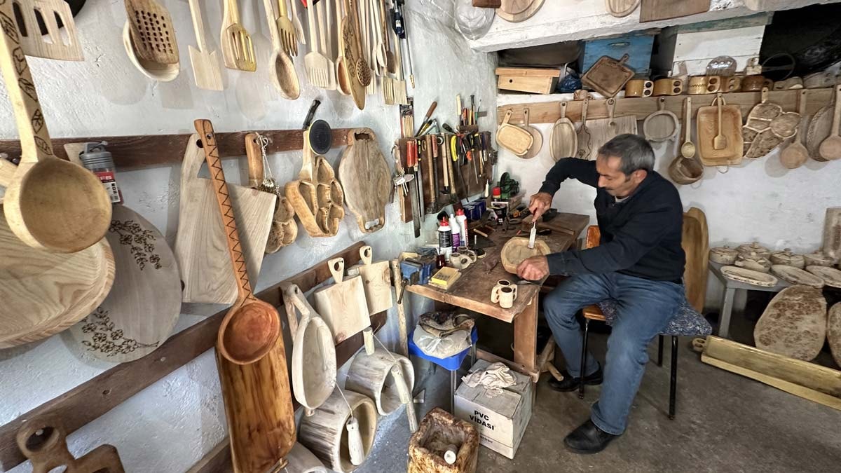 Yemek sektöründe çalıştıktan sonra 10 yıl önce köyüne döndüğünü anlatan Taş, ilk önce bir kız çocuğuna beşik yaptığını, insanlar beğenince de tabak ve kepçe oyarak çalışmalarını sürdürdüğünü belirtti.