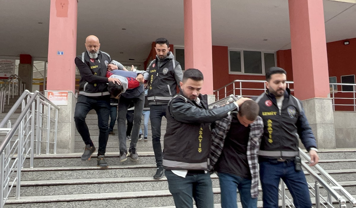 Ekipler, kimliklerini tespit ettiği şüpheliler E.D., B.E.A., A.F.O. ve B.T.İ.'yi dün gözaltına aldı. Emniyette işlemleri tamamlanan 4 şüpheli, bugün Kocaeli Adliyesi'ne sevk edildi. Hakim karşısına çıkan E.D., B.E.A., A.F.O. ve B.T.İ., 'Kasten yaralama' ve 'Hakaret' suçlarından tutuklandı.