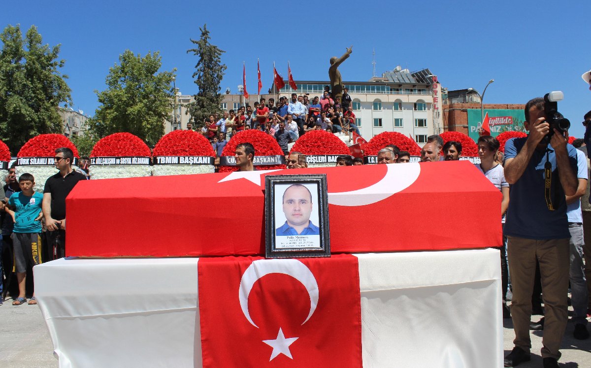 Ey Taha kardeşim ben senden razıyım. Ya Rabbi ben şahidim ki Taha kardeşim annesinden emdiği sütü hakkını sonuna kadar verdi. Kendisine giydirilen polis üniformasının hakkını sonuna kadar verdi. Kendisine bayrağın, silahın sonuna kadar hakkını verdi. Ben şahidim sende şahit ol ya Rabbi. Silah arkadaşları da şahit ya Rabbi. Bugün bütün Adıyaman şahit ya Rabbi. Sen de şahit ol ya Rabbi. Adıyaman bugün şehidini bayrağına sardı, Adıyaman bugün şehidini ay yıldızlı bayrağına sardı. Şair ne demişti ey şehit oğlu şehit istemeden benden makber sana avucunu, kucağını açmış bekliyor peygamber demişti. Adıyamanlı bugün şehidini Peygamberin kucağına gönderiyor. Allah’a gönderiyor. Ey hainler, ey fareler, ey fare gibi deliklerde gezenler siz kimin kucağına gideceksiniz. Siz kimin kucağına oturacaksınız. Bu Adıyamanlı bunun hesabını soracak bu askerlerimiz, bu polislerimiz, bu jandarma özel hareket bunun da hesabını soracak” dedi Adıyaman Müftüsü Mehmet Taşcı’nın duasının ardından, Emniyet Müdürü Metin Alper başta olmak üzere polisler, tabutu sırtladı. Cenaze aracına götürülen şehidin tabutu daha sonra Adıyaman Havalimanına götürüldü.