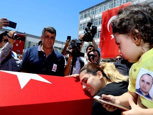 Tekbirler ve sloganlar eşliğinde tören alanına getirilen şehidin tabutuna sarılan şehidin eşi Sümeyra Uluçay, tabuta sarılara “Nasıl kıydılar sana, ah canım ah, kalk kalk. Ayağının altını öpeyim” dedi.