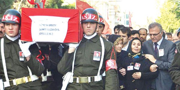 Tekirdağlı şehit Uzman Çavuş Dinçer Ersoy (22), 10 bin kişinin katıldığı törenin ardından gözyaşlarıyla memleketinde toprağa verildi. Şehidin babası Mustafa Ersoy, ağlayan yakınlarına “Ağlamak yok. Dik durun” diye seslendi. Anne Hatun Ersoy ise “Benim güzel oğlum. Sen böyle mi gelecektin evine?” diyerek feryat etti. Cenazeye katılan yaklaşık bin lise öğrencisi, ellerindeki Türk Bayrakları’nı sallayarak İstiklal Marşı’nı okudu. Öğrecilere vatandaşlar da eşlik etti. (DHA)