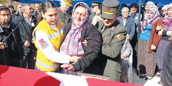 Uzman Çavuş Halil İbrahim Çelik’in cenazesi, Kayseri’de toprağa verildi. Oğlunun Türk Bayrağı’na sarılı tabutunun önünde gözyaşı döken anne Kamer Çelik, “Oğlum seninle burada mı buluşacaktık? Benim bekar oğlum. Kınalı kuzum” diyerek ağıt yaktı. Ardından baygınlık geçiren Kamer Çelik’e yakınları ve camide bulunan sağlık görevlileri müdahale etti. Cenazeye katılanlar, sık sık tekbir getirip, bölücü terör örgütü PKK aleyhine sloganlar attı. (DHA)