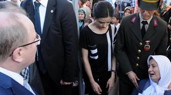 "Nasıl bir çözüm süreci bu nasıl. Milleti oyalıyorsunuz, çözüm süreci diye. Burada millet yiyip içip keyfine bakıyor, siz biliyor musunuz Doğu da neler oluyor. Benim kocam 5 gündür evine gelmiyor, çocuklarının yüzünü görmüyor. Çözüm süreci diye oyaladınız, oyaladınız. Milletin canını yaktınız. Milletin canı yanıyor. Sonra iki gün sonra herkes keyfine bakıyor. Kocamın kanı yerde kalmasın. Millet Doğu'da dışarıya çıkmaya korkuyor. Bu nasıl bir şey, bu nasıl bir yaşam tarzı. Güneydoğu'yu alıyorlar. Askere vur emri vermiyorlar. Terör vuruyor, asker bekliyor. Eline alıyor silah gidiyor yolun ortasında bekliyor sap gibi. Askerde vursun, askerde onları öldürsün" dedi.