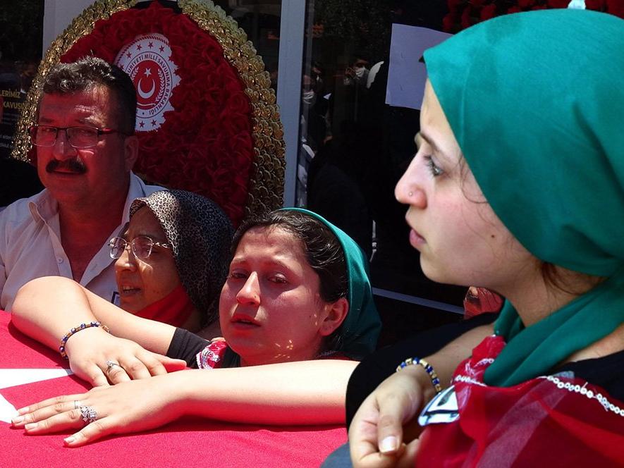 Şehit eşini, tabutunu okşayarak son yolculuğuna uğurladı