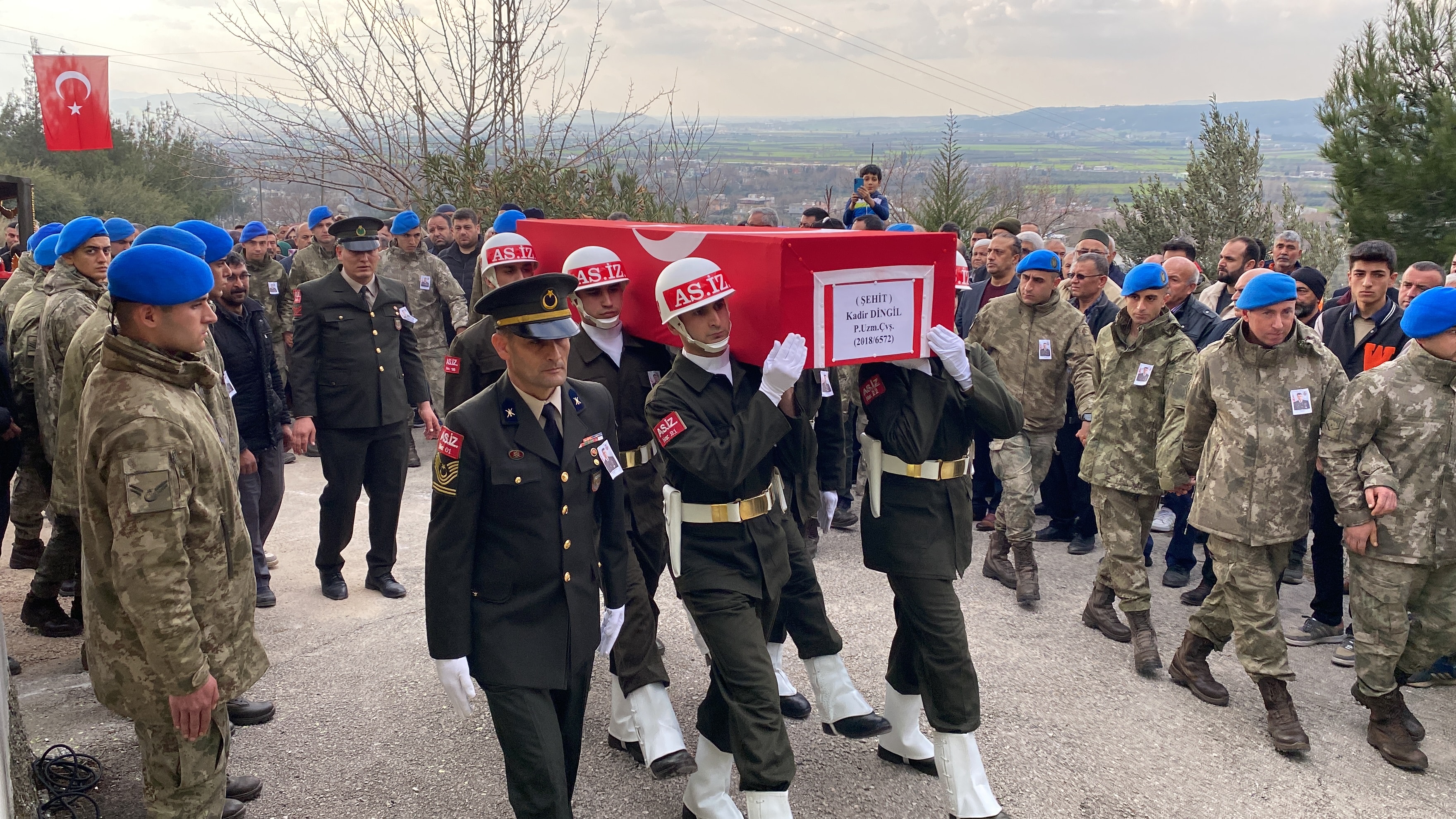 Irak'ın kuzeyindeki harekat bölgesinde şehit olan Kadir Dingil'in (30) Türk bayrağına sarılı naaşı, Çona köyündeki babaevinin önünde helallik alınmasının ardından cenaze töreni için köydeki mezarlığa götürüldü.