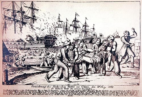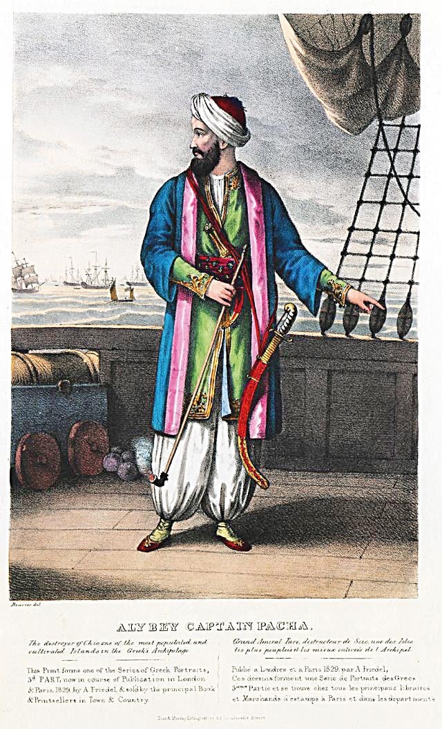 Osmanlı Donanması’nın Amiral gemisini yakmayı başaran Kanaris ve arkadaşları.Bir süre sonra bilinmeyen bir sebeple bu görevinden ayrılan Ali Paşa, meşhur tarihçi Şânizâde’nin de ifade ettiği gibi denizcilikte şöhret ve maharet sahibi olduğundan, aynı göreve devrin padişahı II. Mahmud’un aşağıda günümüz Türkçesiyle ifade edilen Hatt-ı Hümayun’u ile tekrar getirildi: