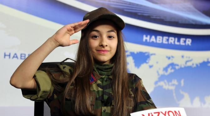 SİVAS'ta 23 Nisan kutlama etkinlikleri kapsamında uydu üzerinden yayın yapan televizyonun ana haber bültenini Şırnak'ta şehit olan Jandarma Kıdemli Astsubay Çavuş Müslüm Fırat'ın kızı İrem Fırat, asker üniformasıyla sundu.