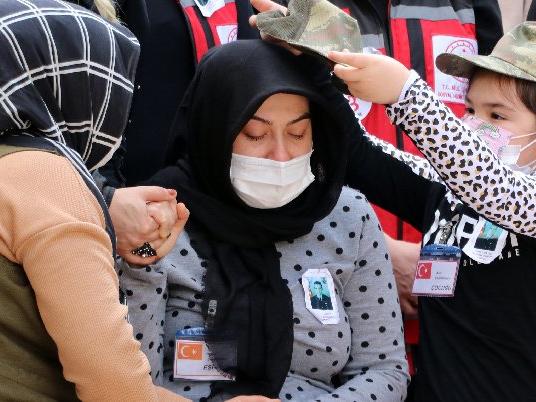 Şehidin annesi Sultan, babası Mehmet ve eşi Serap Günaydın cenaze alanına gelirken gözyaşlarına boğuldu.