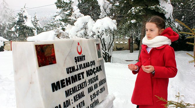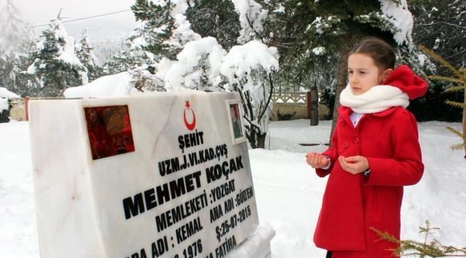 Yozgat'ta Şehit Jandarma Uzman Çavuş Mehmet Koçak`ın 9 yaşındaki kızı Gülten Naz, karnesini aldıktan sonra babasının mezarını ziyaret etti.