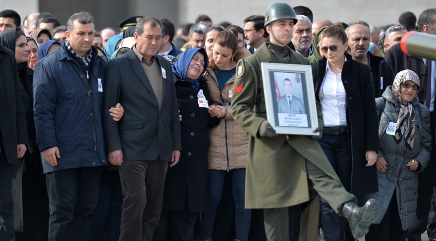 Şehit olan Uzman Çavuş Mahmut Uslu için Ahmet Hamdi Akseki Camii'nde düzenlenen törene Başbakan Binali Yıldırım, CHP Genel Başkanı Kemal Kılıçdaroğlu, Genelkurmay Başkanı Orgeneral Hulusi Akar, Milli Eğitim Bakanı İsmet Yılmaz, MHP Genel Başkanı Devlet Bahçeli, Kara Kuvvetleri Komutanı Orgeneral Salih Zeki Çolak, Hava Kuvvetleri Komutanı Orgeneral Abidin Ünal, Genelkurmay İkinci Başkanı Orgeneral Ümit Dündar ile garnizonda görevli askerler, polisler ve çok sayıda vatandaş katıldı. 27 yaşındaki şehit Mahmut Uslu'nun için öğle namazının ardından cenaze namazı kılındı. Namazın sonrasında şehidin Türk bayrağına sarılı naaşı, askerlerin omzunda top arabasına alındı. Şehidin annesi Mürşide Uslu yakınlarının desteğiyle ayakta durabildi. Kortejde Başbakan Yıldırım, CHP Genel Başkanı Kılıçdaroğlu ve MHP Genel Başkanı Bahçeli yan yana yer aldı. Askerler tarafından top arabasından cenaze aracına alınan şehidin naaşı, Karşıyaka Mezarlığındaki şehitler bölümünde defnedildi. (DHA)