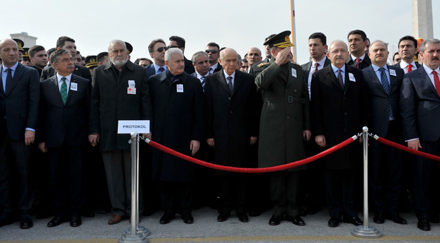 Fırat Kalkanı Harekatı kapsamında Suriye'nin kuzeyindeki El Bab bölgesinde terör örgütü DEAŞ ile yaşanan çatışmada şehit olan Uzman Çavuş Mahmut Uslu için Ankara'daki Ahmet Hamdi Akseki Camii'nde tören düzenlendi. Törende 3 partinin lideri yan yana durması dikkat çekti.