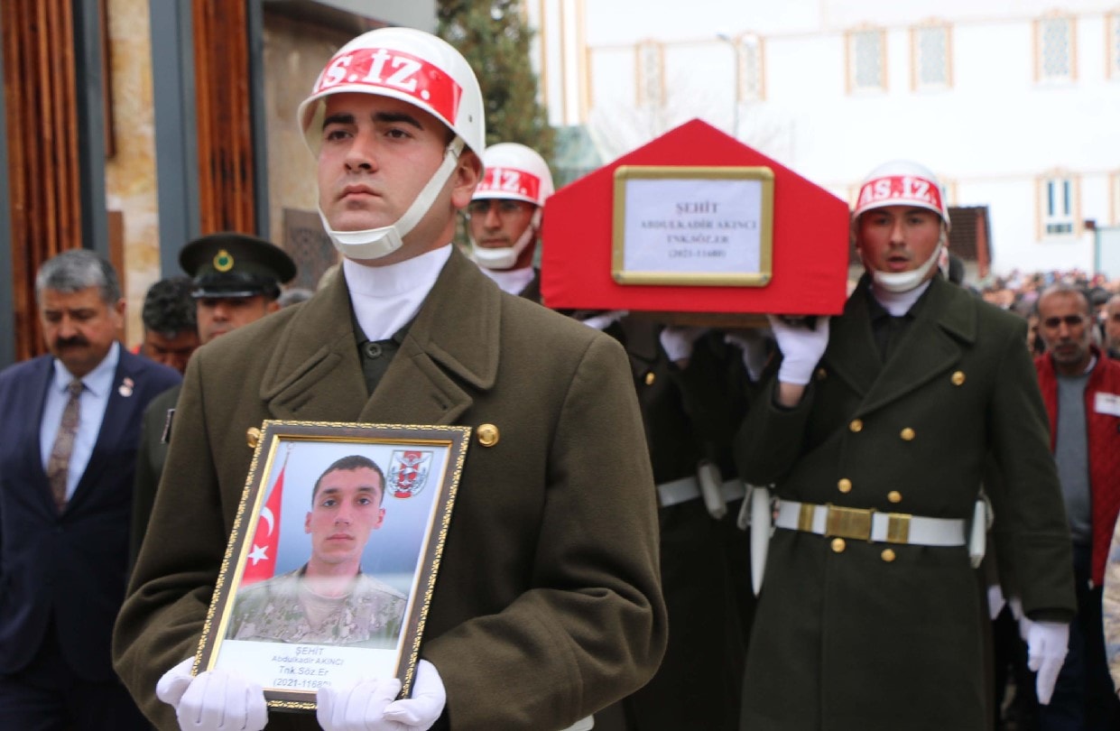 Şehadet haberi ile yakınlarını yasa boğan Akıncı'nın cenazesi, bugün helikopterle Adıyaman Havalimanı'na getirildi. Meliha ve Mehmet Akıncı çiftinin 2 çocuğunun büyüğü olan Abdulkadir Akıncı'nın Türk bayrağına sarılı tabutu, havalimanından konvoy eşliğinde Yeni Mezarlık Camisi'ne getirildi.