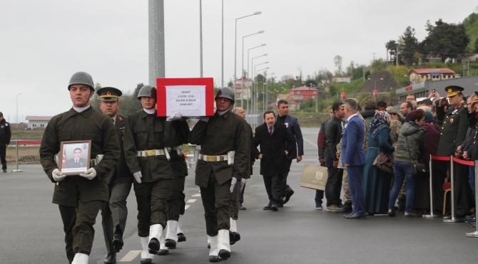 Nedim KOVAN/ GÜLYALI (Ordu), (DHA) ŞIRNAK’ın Uludere İlçesi Bestler Dereler bölgesinde, PKK’lı teröristlerin saldırısı sonucu şehit düşen 30 yaşındaki Jandarma Uzman Çavuş İslam Çubuk’un Türk bayrağına sarılı cenazesi, askeri uçakla Ordu- Giresun Havalimanı’na getirildi.
