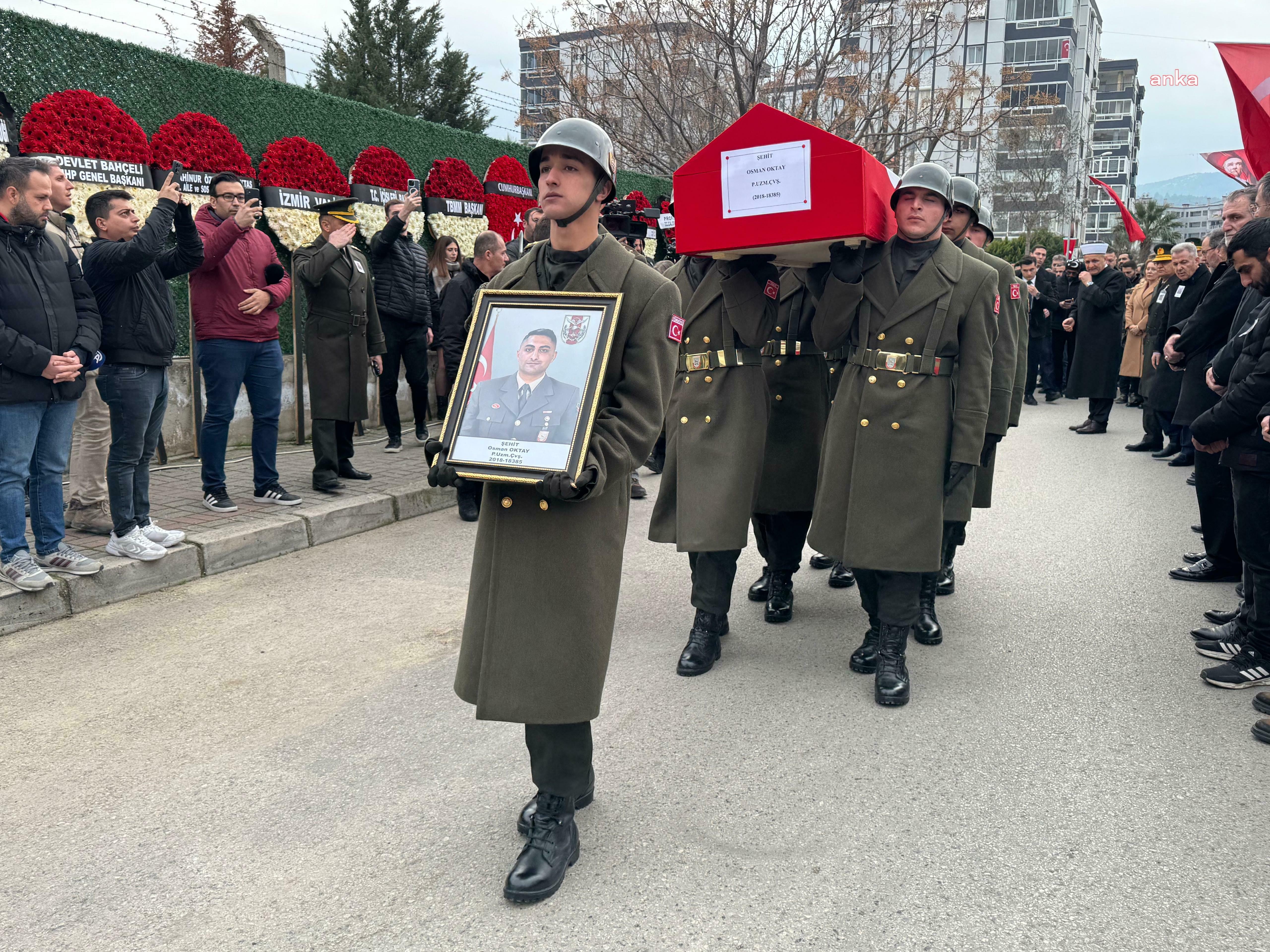 Şehit Piyade Uzman Çavuş Oktay'ın naaşı İzmir İl Müftüsü Sinan Kazancı'nın kıldırdığı cenaze namazının ardından askerlerin omuzlarında top arabasına taşındı.