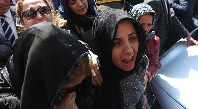 Pınar Özdemir, "Benim eşim bir kahramandı. Ama onların leşleri kenarda, köpek yiyor. Benim eşime bak. Ben eşimle gurur duyuyorum. Benim eşim ölmedi. Ben ayaktayım. Allah onların belalarını versin, Allah onları kahretsin" diye haykırarak gözyaşlarına boğuldu.