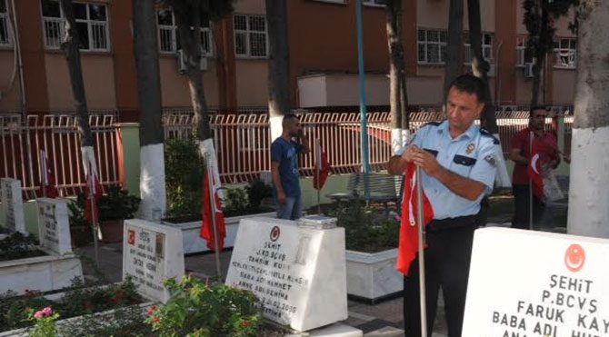 MHP'li Tarsus Belediyesi, şehitliğe Türk bayrakları gönderdi. Bayraklar, polisler