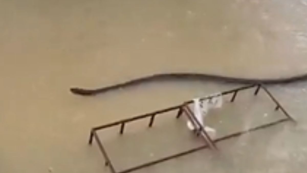 Şehrin göbeğinde sel sularının arasında ilerleyen dev bir yılan görüntülendi. Yılanın hangi tür yılan olduğu bilinmezken, sosyal medya kullanıcıları o görüntüleri hayretle izledi. Bazı kullanıcılar ise ülkede yıların çok olmasından dolayı böyle görüntülerin yaşanmasının normal olduğunu ifade etti.