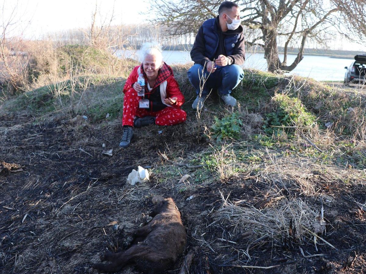 Edirneli hayvansever Mürvet Taşvur, gördüğü manzara karşısında gözyaşlarını tutamadı. Minik köpeklerin annesi ise yavrularının başından bir an olsun ayrılmadı.