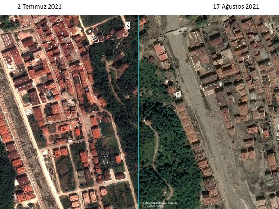 Türkiye'nin ilk uydu yer istasyonu İstanbul Teknik Üniversitesi (İTÜ) Uydu Haberleşme ve Uzaktan Algılama Uygulama ve Araştırma Merkezi (UHUZAM), Batı Karadeniz'de yaşanan ve 81 kişinin ölümüne yol açan sel felaketinin yarattığı tahribatı uzaydan görüntüledi. İncelemelerde sel öncesi ile sonrasının görüntüleri karşılaştırıldı.