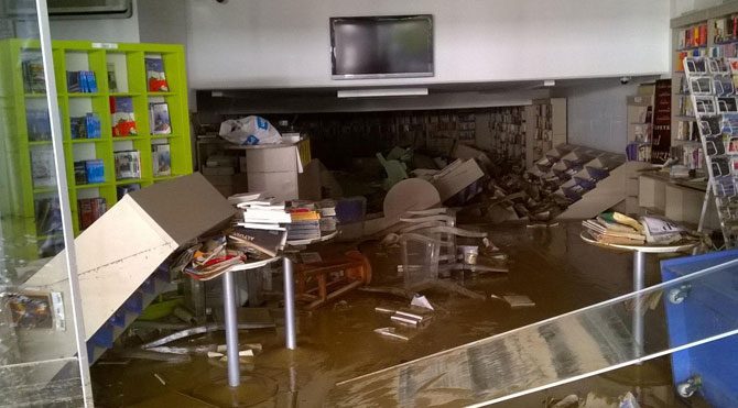 Fotoğraflar:Yavuz ALATANBODRUM- Bodrum’da yaşanan sel felaketi, kitabı da vurdu. İmge Kitabevinin Bodrum Oasis AVM içindeki mağaza da sel sularının hedefi oldu.