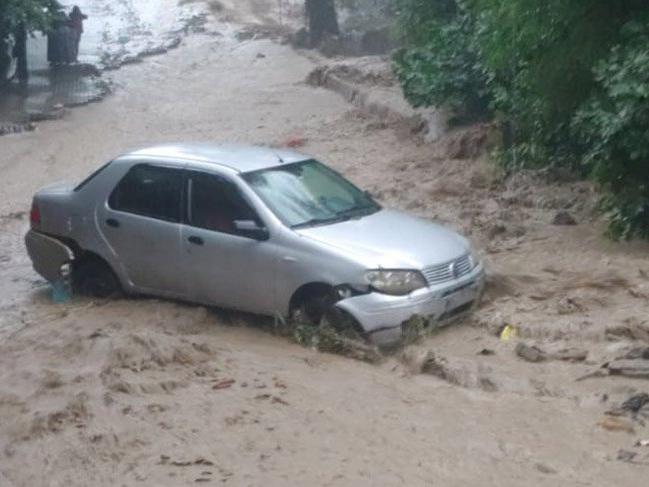 Zonguldak’ta aniden bastıran şiddetli yağışla beraber ara mahalleler nehre döndü. Şiddetli akıntıya kapılan araç yokuş boyunca sürüklendi.