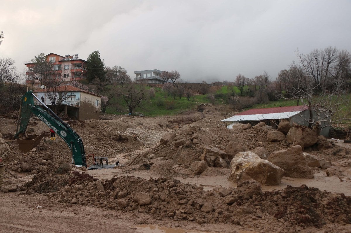 Depremin vurduğu Adıyaman'ın Tut ilçesinde salı gecesi başlayan sağanak yağış sırasında Ömerovası Deresi taştı. Tekdal ve Sarıkaya ailelerinin dere kenarındaki bahçeye yerleştirdikleri konteyner, taşkınla birlikte oluşan sel sularına kapıldı.