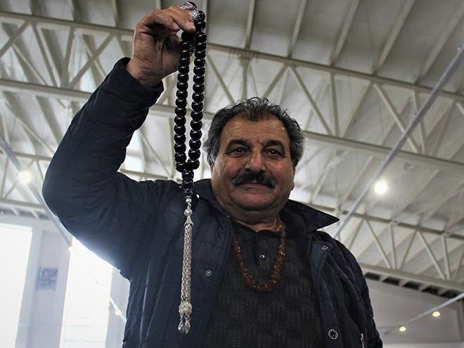 Demir, "Daha önce burada pazarcılık yapıyordum. Sebzeyi bıraktım bu işe başladım. Böyle güzel tespihler satıyorum. Bu gördüğünüz malzeme Osmanlı'dan kalma eski 100-150 senelik tespih. Taşı hakiki orijinal kehribar. Fiyatı 300 bin lira. İstanbul'dan çok telefon ettiler istediler ama anlaşamadık. 250 bin lira teklif ettiler, ben de 300'den aşağı olmaz dedim. Özellikle antika değerindeki tespihleri topladım içerisine biraz da ben kattım ama naylon tespih bulundurmam hepsi özellikli ve değerli tespih. Damla kaya kehribarının gramını ise 26 dolara satıyorum" dedi. (İHA)